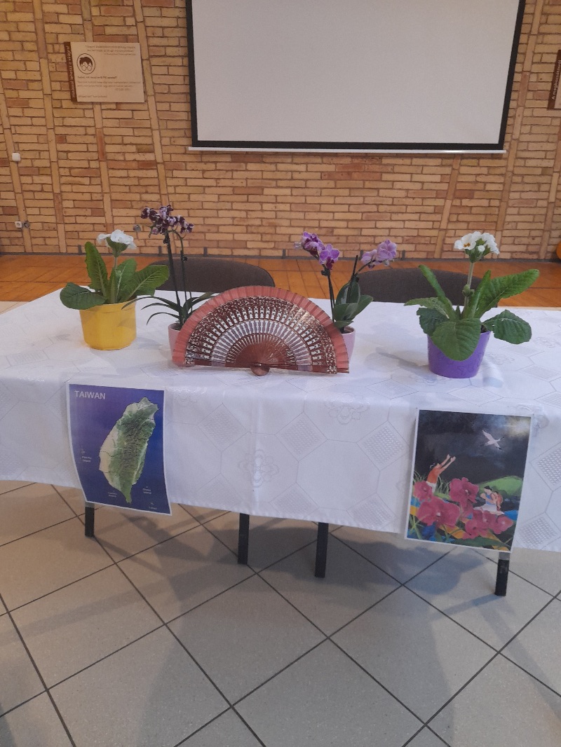Az igehirdetés után, vetítőképes előadás segítségével bemutatásra került Tajvan szigetországa. Az imanapon részt vevők megismerkedtek az ország földrajzi elhelyezkedésével, éghajlatával és környezetével. Betekintést nyertek Tajvan népességének történelmébe, politikai és gazdasági, valamint vallási és kulturális helyzetébe, egészségügyi és oktatási eredményeibe, a tajvani asszonyok életébe. Tajvant a történelem során különböző idegen országok gyarmatosították, ami számos etnikai konfliktushoz, kulturális és társadalmi változáshoz vezetett. A szigetországban élő keresztyén nők nagy szerepet vállalnak abban, hogy minél több ember számára vonzóvá tegyék a keresztyén tanításokat. A világimanapi plakáton látható nők egy patak mellett ülve némán imádkoznak és felnéznek a sötétbe. Az előttük lévő út bizonytalansága ellenére tudják, hogy az üdvösség Jézus Krisztusban már eljött és az övék. Az alkalom zárásaként a jelenlévők egy Tajvanról szóló kvíz segítségével tesztelték magukat, mennyit sikerült elsajátítani az országismertető információkból. Majd mindenki kapott ajándékba egy imanapi könyvjelzőt, illetve két tajvani süteményreceptet.